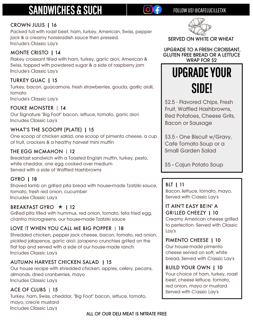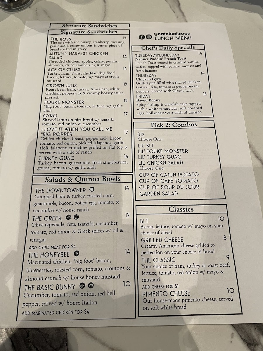 Welcome to Café Lucille, a delightful culinary gem nestled in Texarkana, TX, at 306 Main St. This vibrant café redefines brunch with an imaginative menu that boasts a variety of savory options. Highlights include the TexMex Chicken Quinoa Bowl, featuring a tantalizing mix of flavors from guacamole to tortilla strips, all for just $15. The fan-favorite Breakfast Gyro has earned rave reviews for its unique twist on a classic breakfast.